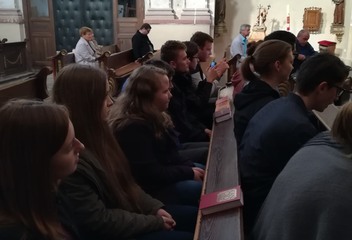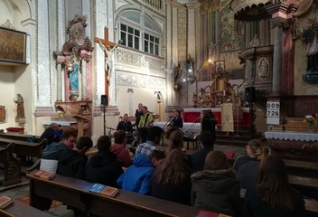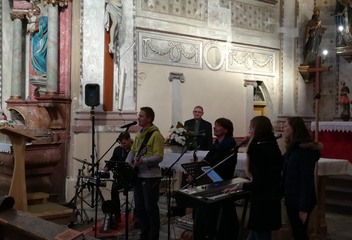 V Kostele, kde program pokračoval i pro širokou veřejnost vystoupila tentokrát kapela Koinonia z Plzně. Jejich repertoár byl nabitý spirituály a chorály v netradičním, ale rytmickém provedení a písně se v kostele rozléhali díky skvělé akustice opravdu všude. Od zpěvačky Lenky byla dokonce vidět zář nad hlavou. Do vystoupení byly zapojeni i návštěvníci a celý den se nesl v přátelském a hlavně veselém duchu.